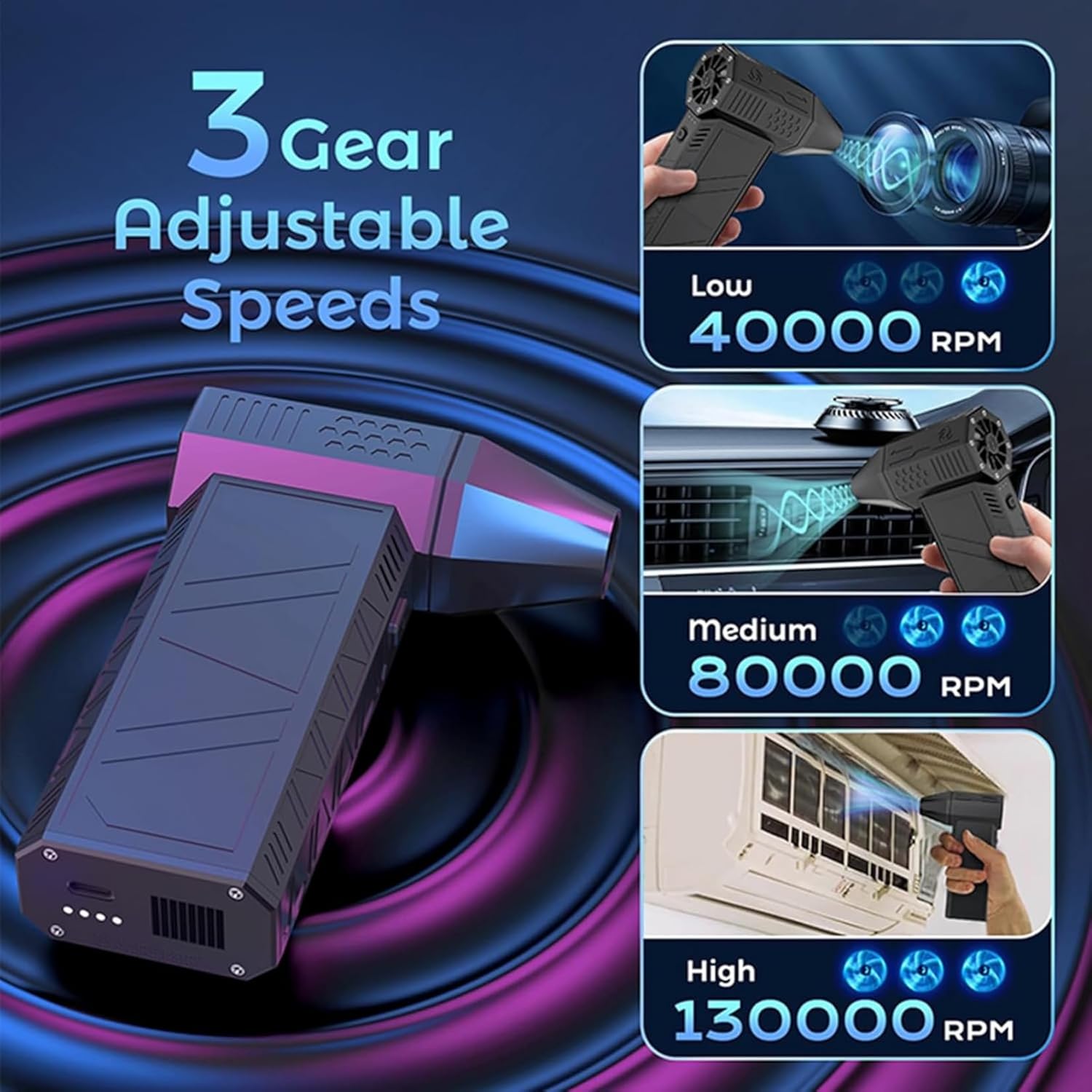 TurboJet: 130,000 RPM Cordless Air Duster & Mini Blower – High-Speed Cleaner with Stepless Speed Control, Magnetic Nozzles & USB Rechargeable Battery for PC, Car & Home
